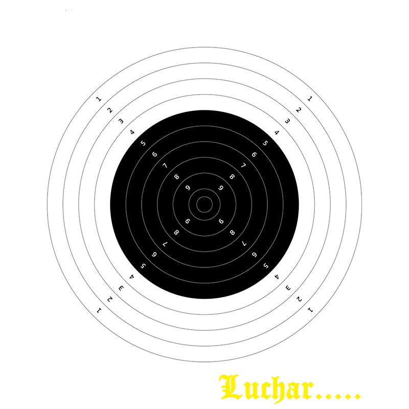 Para los más puristas, la realización del ejercicio está ideada sobre un blanco como en la foto, en el que el diámetro de la zona de puntuación del 10 es de 4,56” (11,58cm) y el de la zona del 9, de 8,56” (21,74cm).