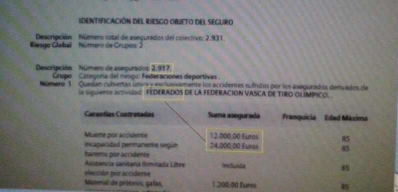 Pero lo que no está escrito en ningún sitio es que las vidas del presidente de la Vasca y de los miembros de su Junta tengan necesariamente que valer, en caso de muerte accidental, un mil por ciento (1.000%) más que las de los tiradores: 120.000 euros frente a 12.000. Y en caso de incapacidad a tope de baremo, nos encontramos con un ratio de 120.000 y 24.000 euros, respectivamente. ¿Cabe deducir que la práctica deportiva de los directivos o sus desplazamientos in itinere tienen más riesgo que el del común de los mortales?