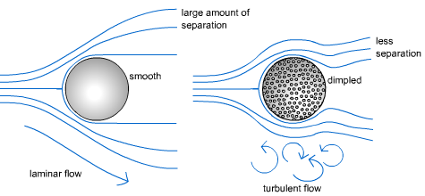 Por que asi fuerzas a que el aire pase por mas superficie de la pelota. Se crea una zona mas pequeña de turbulencia detrás, eso hace vuelo mas eficiente. Pero a medida que aumenta la velocidad, esa zona seria muy turbulencia creando inestabilidad.
