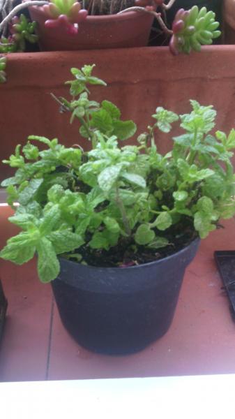 Y esta menta anoche medía palmo y medio y ya estaba a punto de cortar para secar (me gusta echarle menta al té)