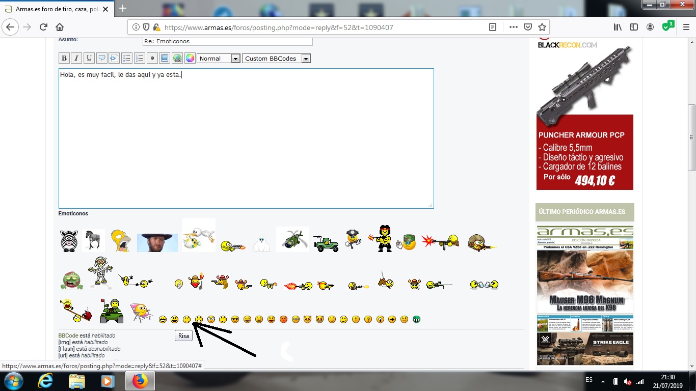 Hola a todos.Pediria por favor si hay algún compañero tan amable que me diga como poner los emoticonos. Muchisimas gracias.