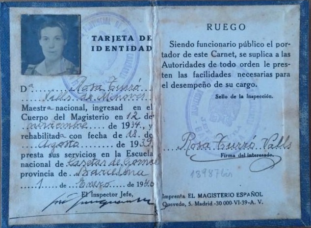 Esta persona fue citada lo mismo que decena de miles de funcionarios mas en toda España, vieron que no tenia delito de sangre e inmediatamente se incorporo a su puesto de maestra.