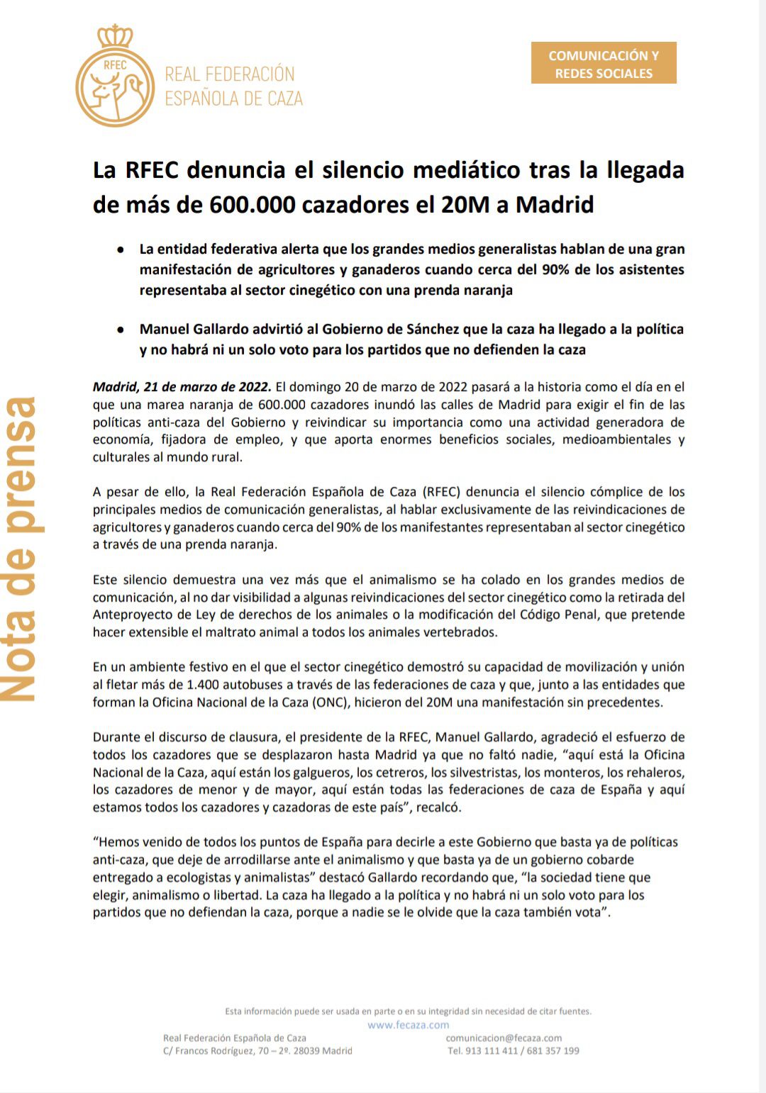 Me ha sorprendido la falta o inexistente profesionalidad de los "periodistas", era imposible no ver que % eramos cazadores, no solo por los chalecos sino por la gran cantidad de pancartas que indicaban quienes eran y de donde venían.