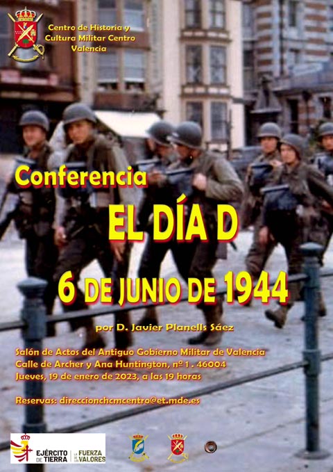 En el Salón de Actos del antiguo Gobierno Militar de Valencia se impartirá la conferencia, El día D. 6 de junio de 1944.