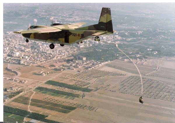 Hola a todos . En Jabalí Nuevo estuve de instrución y para embarcar en los junkers de chapa ondulada, en Alcantarilla, de puesta en marcha, los motores, se empleaban cartuchos del 10, , con tres vueltas turisticas por encima de Murcia, para que estos "paratos" alcanzaran 500 metros de altitud y poder saltar con alguna garantia con los paracaidas excedentes del ejercito de USA. Creedme toda una experiencia mística y suicida. Lo mejor es que no creais mucho lo que yo pueda explicar de mis experiencias de paraca. Son absolutamentes negativas y no hago mención ni al ejercito de aquel momento ni a sus medios. Tuve el privilegio de servir a las ordenes de unos militares que con ningún medio, tenian que cumplir con una fachada, falsa, de que eramos la élite del ejercito. Guardo, despues de tantos años, un gratisimo recuerdo de esos militares profesionales y de mis compañeros. Insisto, no hacerme mucho caso, llevo una temporada un pelín depre.......Saludos