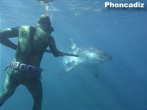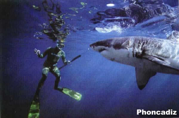 Ese día no hubo avistamiento alguno confirmado de Tigre (el resto de días tampoco, aunque los puntas blancas siempre, pero son una "mariconada"), aunque nada más echarnos al agua en la primera inmersión de la mañana, siendo cerca de las 0700 h, al ir ganando por la pared del arrecife, vimos una forma "bestialmente" grande (algo "más que un rodaballo", ya sabes