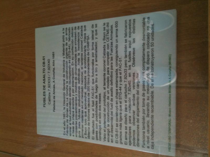 Yo personalmente me pasaré hoy o mañana por el acuartelamiento de atocha de La Coruña donde ponen una exposición sobre "Historia y evolución del fusil de asalto del Ejército Español" sacaré fotos e intentaré publicarlas lo antes posible.