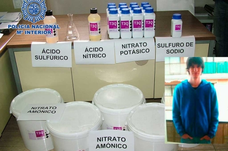 Como siempre en Españ nos gusta sacar las cosas de quicio a tope.Desde luego el tipo ese está bien detenido, pues las intenciones eran las que eran.Pero en la foto como bien se comenta aparecen los componentes pero no el explosivo(formado).Es que por esa regla de tres un camion con fertilizante que lleva nitrato y en el depósito gasoil es un kamikaze.Y no es eso.Repito me parece muy bien que lo hayan detenido pero me parece que estas cosas cuanta menos publicidad mejor.Que siempre hay un gilipollas que intenta emular.
