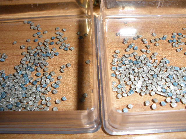-Pero hay alguna pólvora (creo que sólo de arma larga) que sí que varía si pones el cartucho recargado en el tumbler. En esta foto podéis ver el resultado de 2 horas de tumbler, pero no sé ni qué calibre es, ni qué pólvora: