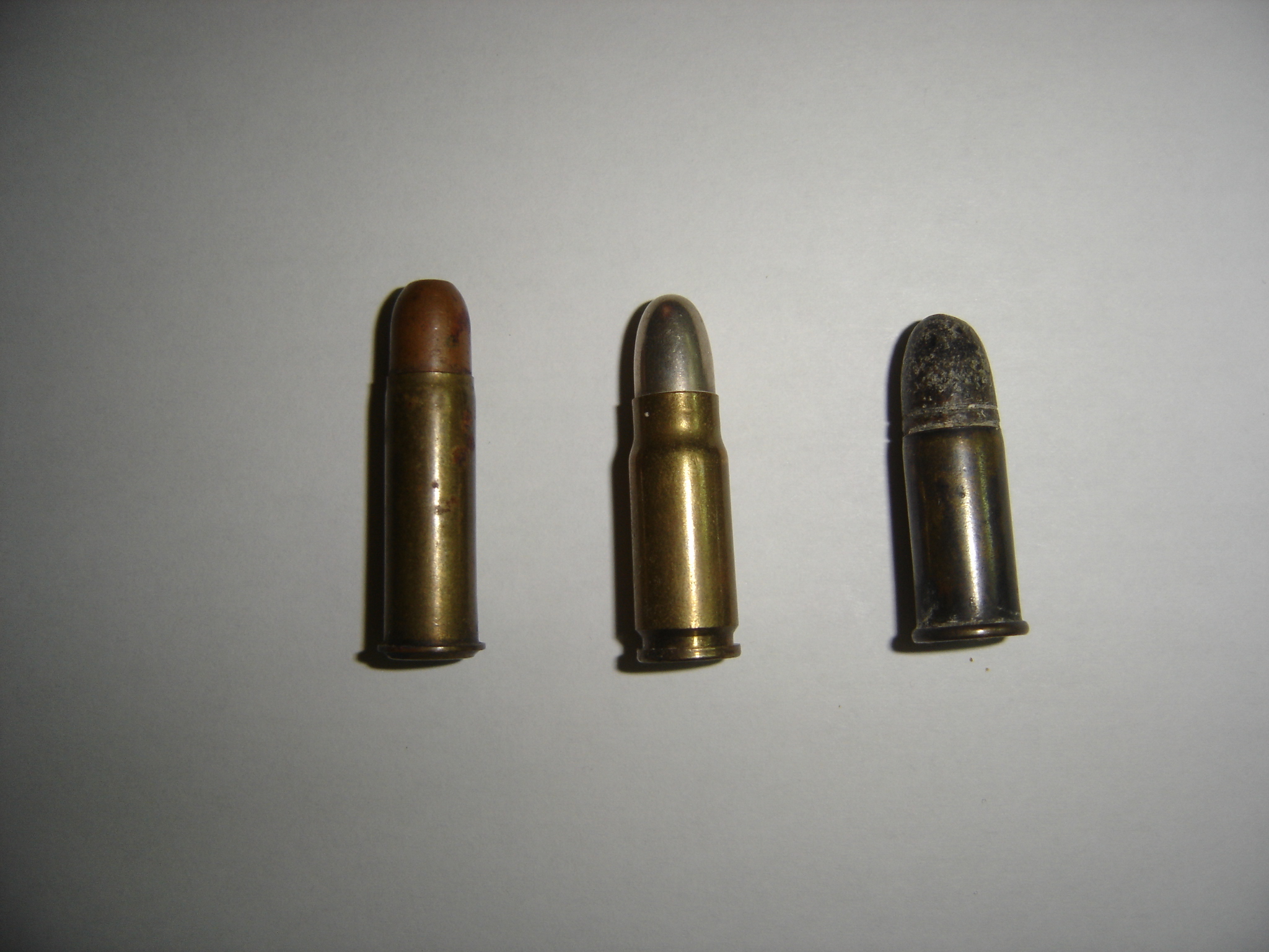 La de la izquierda parece ser un 8 Lebel de revolver frances de ordenanza 1896, la del centro parece ser asimismo un .30 Luger o tambien conocida por 7,65 Parabellum y la de la derecha parece un .38 S%W, pero sin ver el culote mal lo tenemos compañero, intenta sacar unas fotos de esos culotes, si los limpias antes someramente, mejor que mejor, cuantos mas datos se vean, la identificacion es mas facil.
