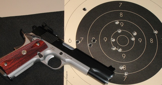 Por causas que no vienen al caso estoy usando un kit de 9mmP para 1911 de la marca Norinco. Lo he montado sobre el chasis de mi S&W 1911 DK. Al objeto de poder competir con él he montado sobre su corredera un juego LPA de punto de mira y alza regulable al que le he cegado las fibras de colores con rotulador permanente y le he ampliado con un lima las luces pues eran excesivamente cerradas. Me gustaría que quedaran más bajas la miras pero es lo que hay.