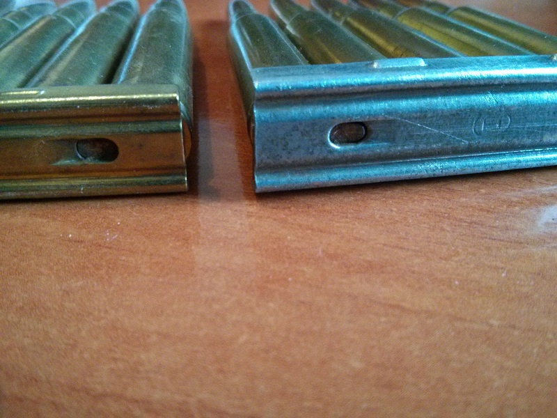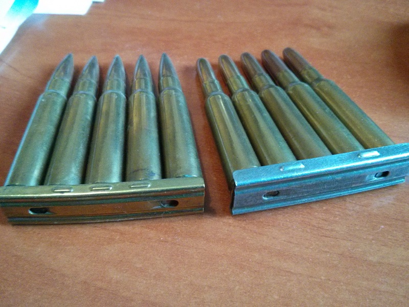 A ver si alguien nos puede confirmar su compatibilidad. Los cartuchos los sujetan indistintamente en ambos calibres, pero no estoy seguro de que reaccionen igual ante la hendidura del fusil para los peines.