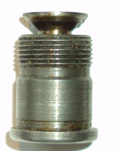 Aquí se ve un tapón US-G.I. con el muelle completamente comprimido, y la copa extendida. Todo el gas iría hacia fuera atravesando el tapón que es medio hueco, y no entraría nada de gas al cilindro.