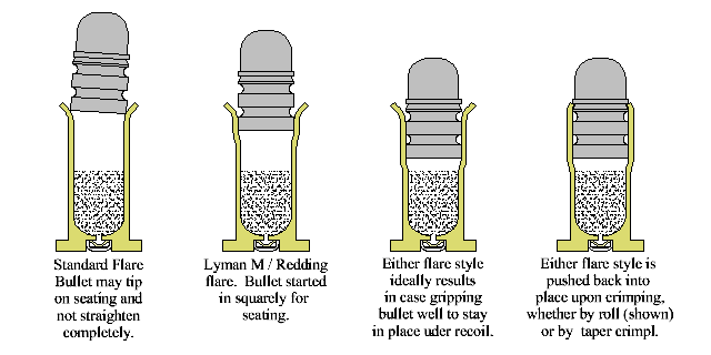 Para salir de dudas mide el calibre del cono del abocardador a largo de su recorrido, para que sea un verdadero rectificador interior de la vaina a la medida nominal (X) de las puntas del calibre en cuestión (por ejemplo 0.355-0.356 en el 9mm) , ese cono (mas bien debe ser un cilindro) que tiene el lee debe medir exactamente lo mismo (esa medida X) desde su inicio hasta el final y esta distancia sera la normal que mide la parte de punta que solemos introducir en el cartucho y justo superada esa medida debe empezar a engrosar su diametro para abocardar, el lee lo hara en forma de trompeta y el lyman lo hace, como ya dije en forma de machiembrado y para nada tiene que ver con las demas marcas, de ahi mi opinión que es mejor. Si las medidas que sacas en el lee no son iguales a lo largo del cilindro/cono que estamos hablando, tendras un cono largo que abocarda poco mas o menos a lo largo de 1 cm de distancia. La zona que abocarda en el lyman puede medir un par o tres de mm tan solo siendo la medida de esta zona la justa para recibir la punta y no afeitarla al introducirla, el resto de la longitud es el recalibrador de la vaina.