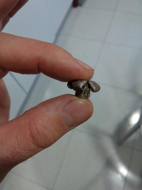 La bala recuperada presenta un diámetro de aprox. 15mm,, mucho mayor que las probadas hasta ahora.