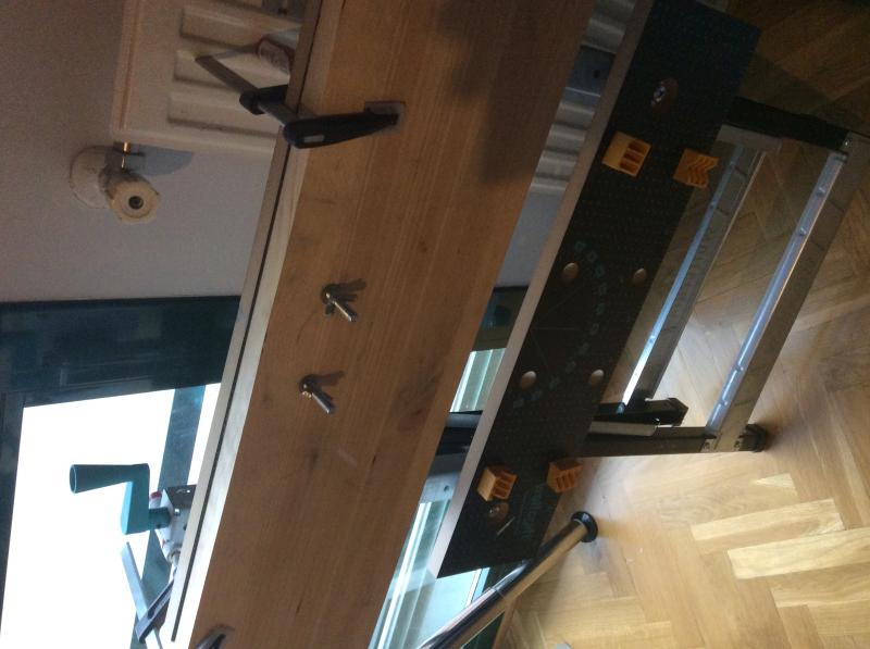 Ten en cuenta también lo indicado por Lostau: un tablón fresado por abajo para poder meter dos tornillos sin que sobresalgan las cabezas y fijarlo a una mesa con tornillos de apriete. Una solución simple e ingeniosa.