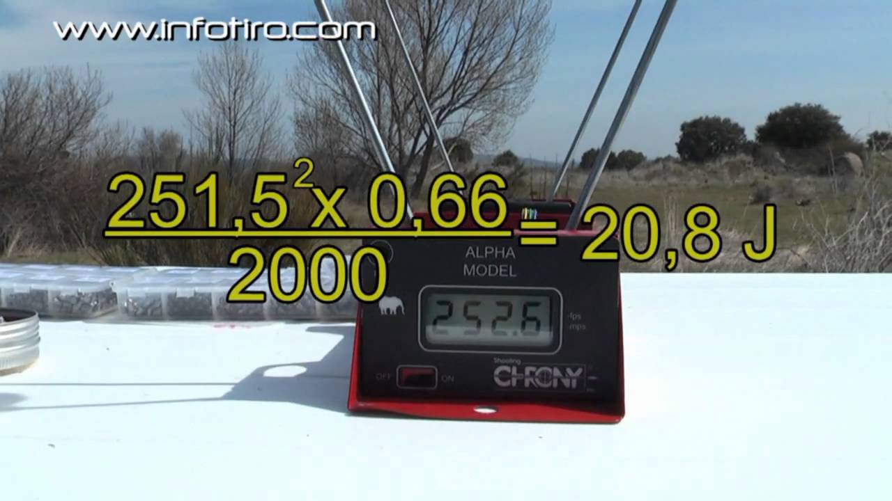 Velocidad proyectil al cuadrado MULTIPLICADO por el peso proyectil en gramos, y este resultado DIVIDIDO por 2000, nos da el resultado en Julios