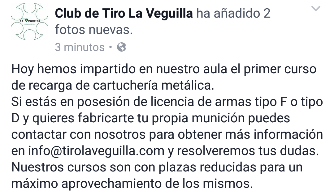 Re: Cursos de recarga de munición metálica