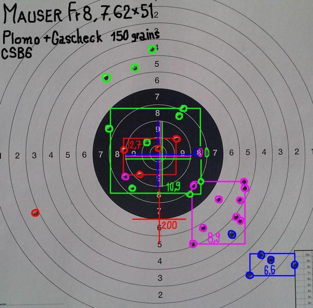 Resulta una munición BBB para 100 metros, agrupa con cargas de 6-13 grains, no pasar de ahí, os dejo una prueba con diversas cargas que hice en su día con un FR8.