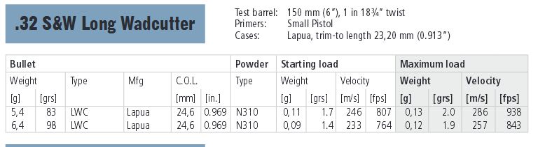 Estoy terminando las existencias de Ba10, para la recarga del 32WC y he comprado Vitahvuori N310 para reemplazarla. Mi recarga actual con la pólvora de Vectan era de 1,2 grains para un peso de punta de 100 grains, manteniéndose en los márgenes de tablas de la citada pólvora.