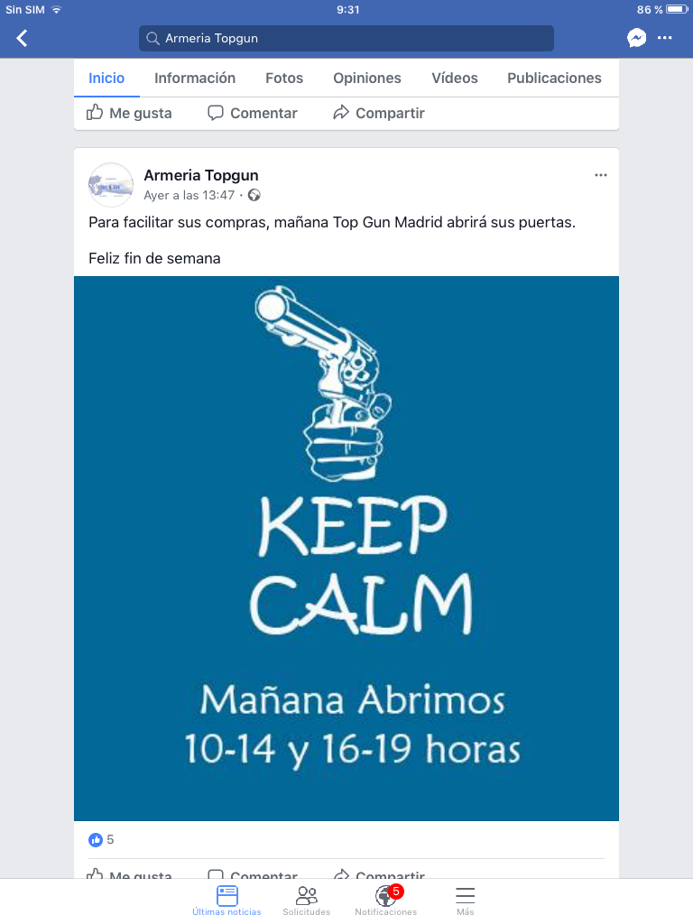 Top gun abre hoy sábado , lo anuncian en su caralibro.