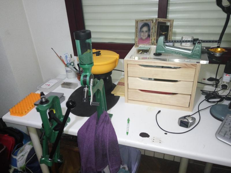 Ese es mi laboratorio de recarga. la mayoria de las herramientas las fabrique a mi gusto, salvo la balanza, y algunas herramientas especificas.