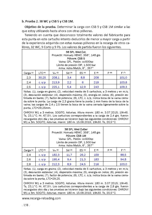 A mi, con 3,4 grains de cbs1m, en vaina 357 y punta wc de 148 grains de plomo, me agrupa de maravilla con mi sw586 de seis pulgadas. Ojo. que esta carga la utilizo en un revolver de 357 magnum, desconozco si un revolver del 38 puede utilizar esta carga aunque imagino que si,seguramente se podría bajar la carga, todo es cuestión de probar.