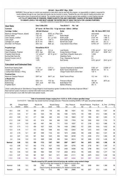 el 308 con 7 grains de esa polvora ya sale subsonico, en el blackout son 5,5. Curioso.