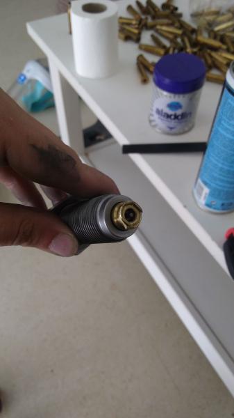 Bueno aquí lo que el atasco de la última vaina causó... La prensa era una lee reloader con la que empecé y creo que es la excusa perfecta para cambiar... No penséis que me colgué como un mono del brazo de la prensa, hice fuerza pero tampoco una barbaridad... Creo que pasaré a una en O o una de tipo torreta...