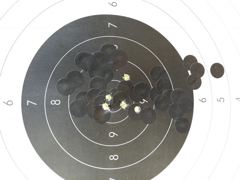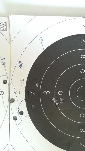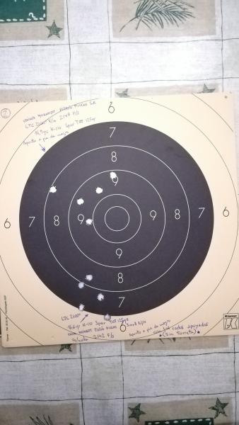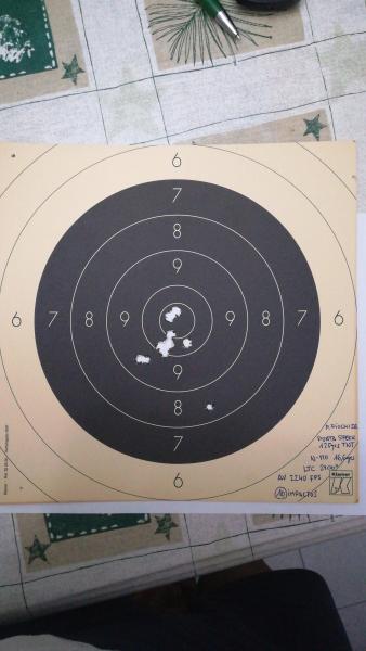 Buenas pues seguimos con más pruebas.... La agrupación a mejorado algo gracias a la torreta y saquete que he utilizado para la prueba. En mesa de tiro y a 100 mts de distancia.
