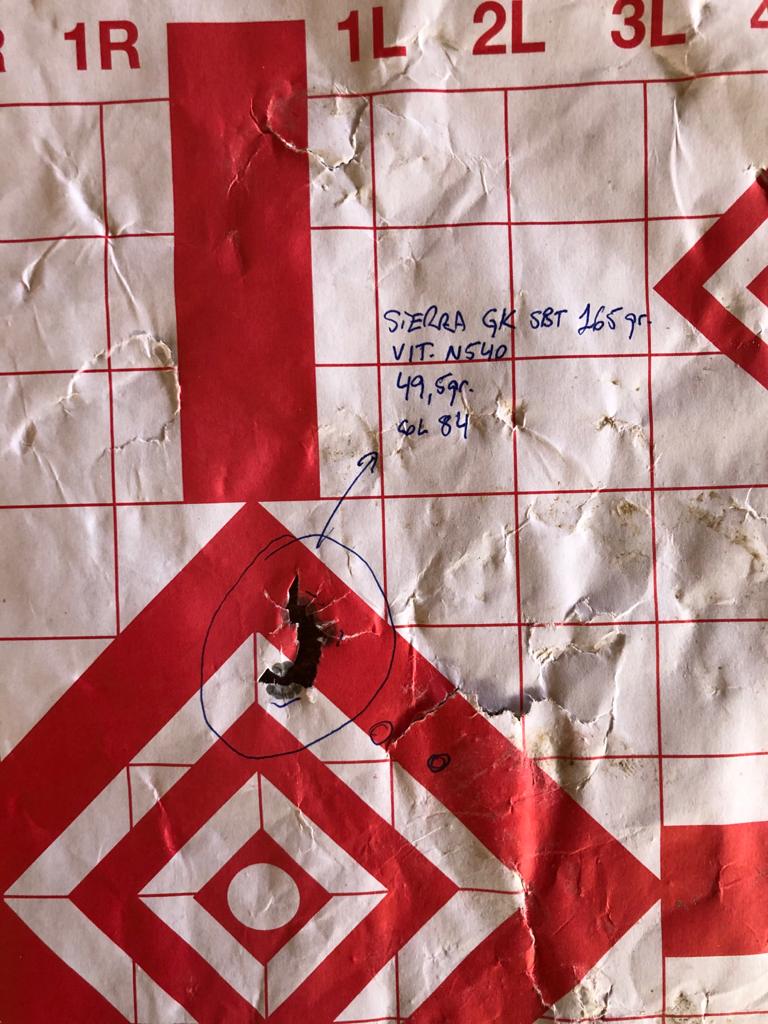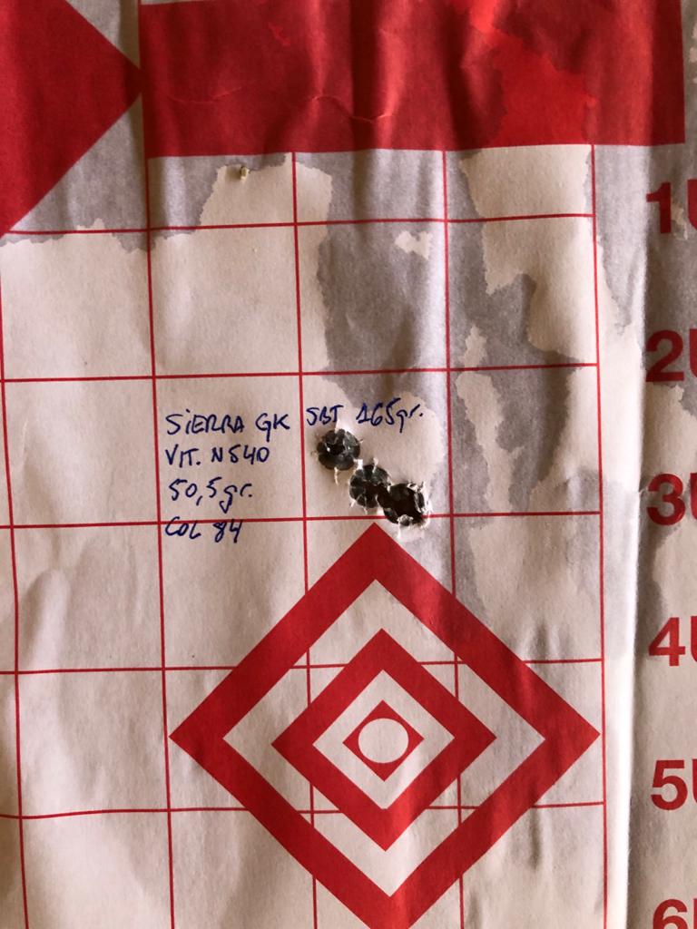 Todas las pruebas han sido con la punta Sierra GameKing SBT de 165gr, y pólvora Vihtavuori N540.