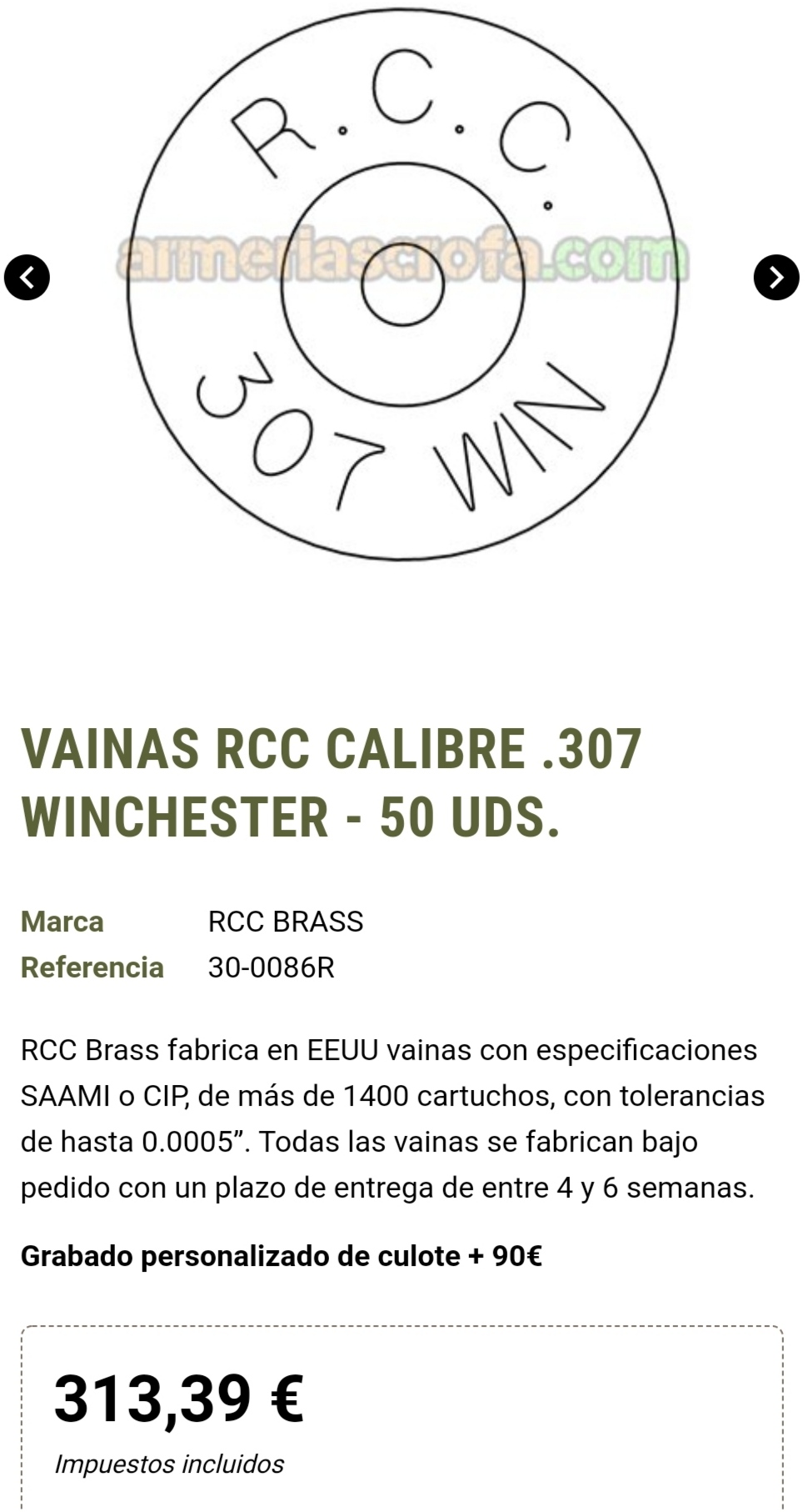 waikinin escribió:Por si interesa a alguien, en BARRAGUN ARMAMENT tienen vainas del .307 Win en stock.
