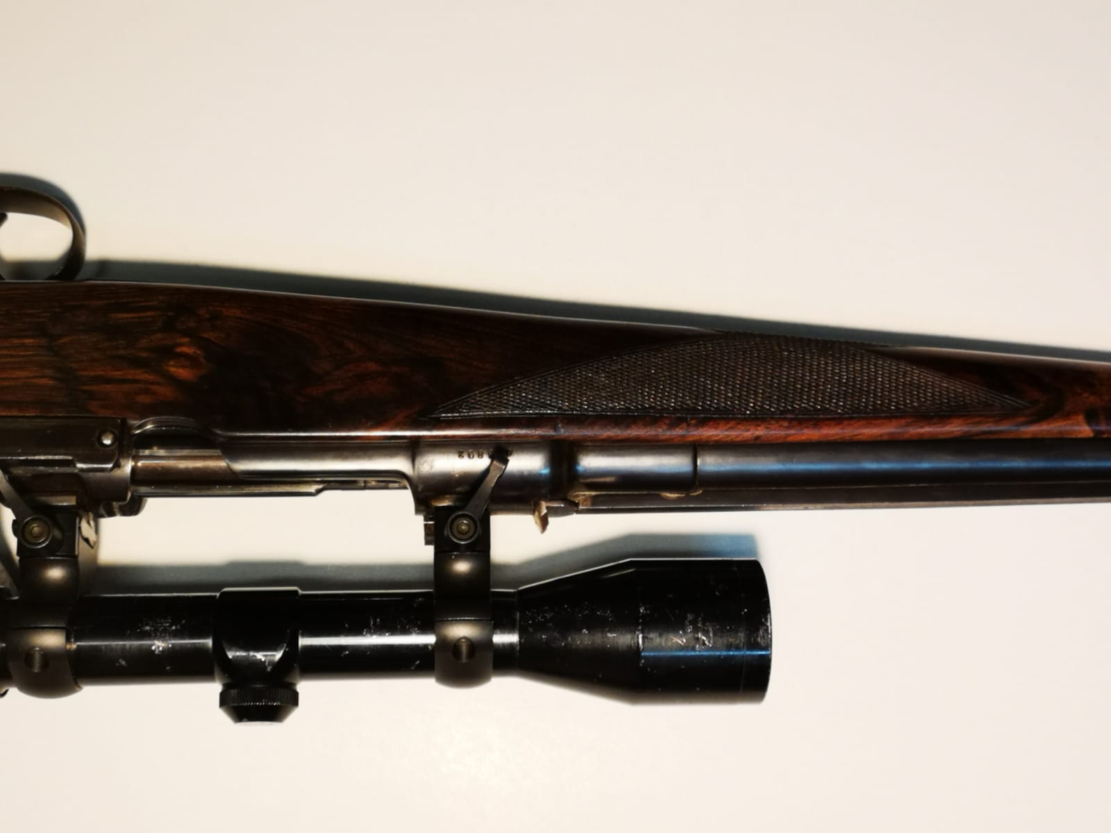 en cuanto pueda, os subo un pequeño reportaje fotográfico que hicimos el otro día mi amigo Rodolfo Villarroel y yo, del rifle restaurado por mi con el montaje completo de visor y toda la pesca.