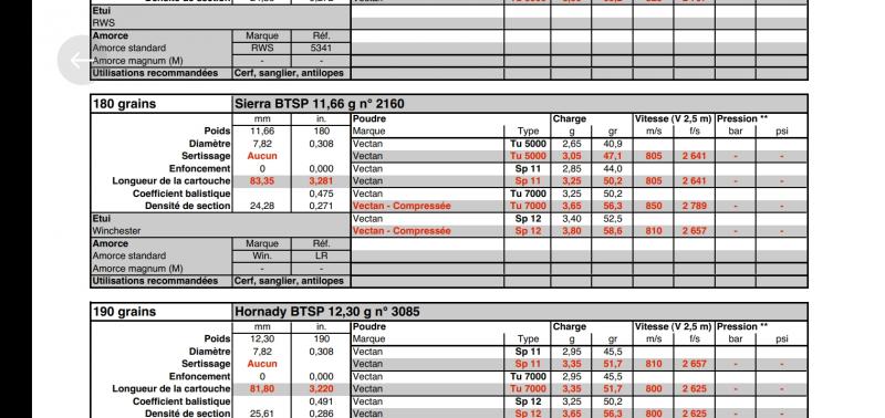 Puedes usar las cargas de la Sierra SPBT 180. Yo la tome de referncia y son muy parecidas Te adjunto el archivo de Vectan. Con Sp11. Te ira bien. yo con Tubal 5000 y 7000. No logre subir de 740m/s.