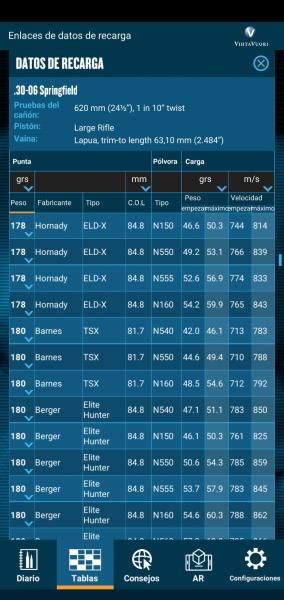 Te adjunto tablas de Vithavuori con diferentes puntas de 180. podras ver q las TSX las carga con menos polvora.