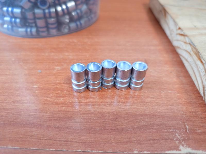 Las puntas también son duras como ellas solas, y las fundimos principalmente para 9 y 45, dando una dureza de 22 Brinell. Cero emplome, cogen la estría a la perfección y cero complicaciones. Usamos mucho los moldes TC, con una sola banda de engrase y vuelan de vicio. Para mí es de las mejores aleaciones para precisión, aunque el arma tiene mucho que decir en esto; No es lo mismo hablar de una semi que de un revólver, ya que en el caso de estos últimos el cono de forzamiento siempre producirá residuos de plomo, que se desprenden del proyectil en mayor o menor medida.