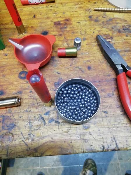 Hoy he cambiado los perdigones a varios del 36/65 y del 410. Al primero le he metido una bala casera y al segundo perdigon del 00.