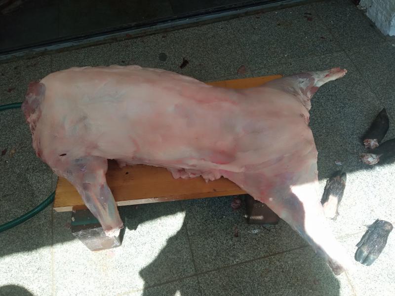 1) el primer cochino macho de unos 80kg lo tiré a unos 100 metros, totalmente cruzado, el tiro en la tabla del cuello, por delante de la paleta. La bala no salió, pero el cochino callo sobre su sombra. La verdad que con este tiro no puedo sacar muchas conclusiones de estas puntas ya que seguramente con otra punta hubiera pasado lo mismo.