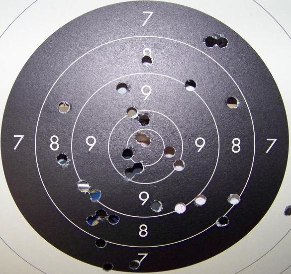 En las dianas del domingo, la de abajo, probablemente por un defecto al empuñar se te van a la derecha, solo tienes 5 impactos en la mitad izda.