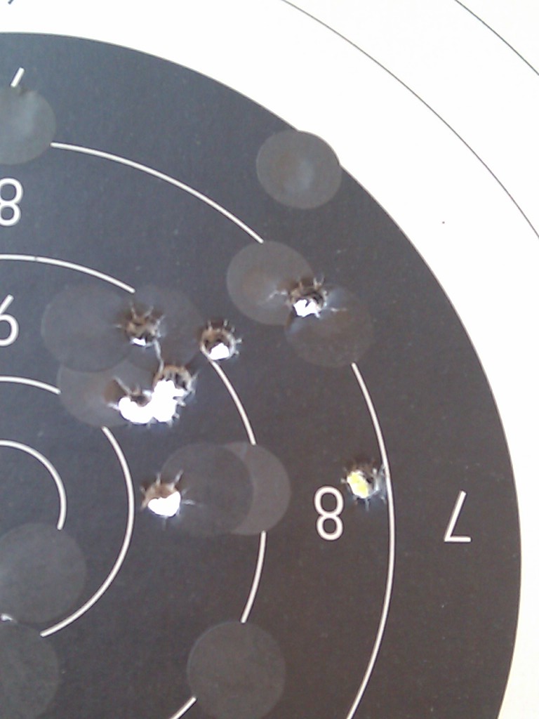 incluyo fotos de las agrupaciones, a 25 metros, apoyado (hay algunos impactos que otro calibre mas pequeño):
