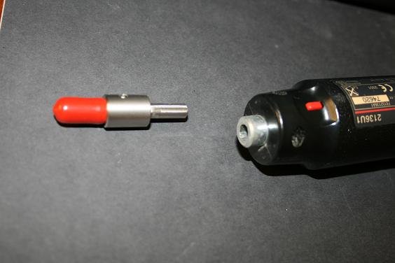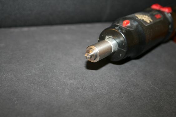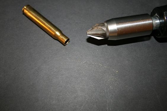 Una vez trimada la vaina hay que desbarbar y chamfranear. Para eso hay un utensilio que parece una bala con rabos y que es exactamente como el que se usa cuando se cortan tubos. Tiene corte en la punta, para el interior de la boca de la vaina, y en los rabos, para el exterior de la boca de la vaina.