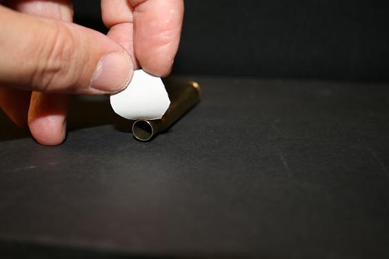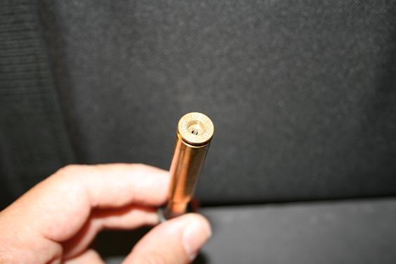 Hay un utensilio muy sencillito y nada caro que redondea y deja a su medida el agujero del oído, además de atrompetar la pared del otro lado, el que da con la pólvora. No os habéis encontrado alguna vez con un agujero pequeño? En la vaina, quiero decir. Esto, que de por sí ya es una ventaja, en realidad viene a solucionar un problema de casi todas las vainas norteamericanas. En Europa se hace la vaina ya con su agujero, pero en los USA se fabrica la vaina ciega y luego se hace el agujero, salvo casos de delicatessen (léase modelos altos de Federal, Nosler Custom y poco más). Eso hace que en muchos casos hay una rebaba dentro, precisamente donde más molesta, que es en la transmisión de la chispa a la pólvora; en casos extremos hace escudo y el resultado es que no se quema toda la pólvora con la consiguiente diferencia en velocidad, presión, etc. esa rebaba-escudo se elimina con este útil.
