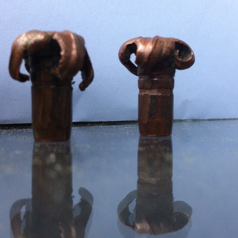 La prueba del nueve es la siguiente: si tomamos una bala semiblindada clásica de latón y plomo y le damos el mismo diseño que una de aleación de cobre, dotándola del mismo orificio y tal, qué quedaría de ella al impactar? Se haría fosfatina.