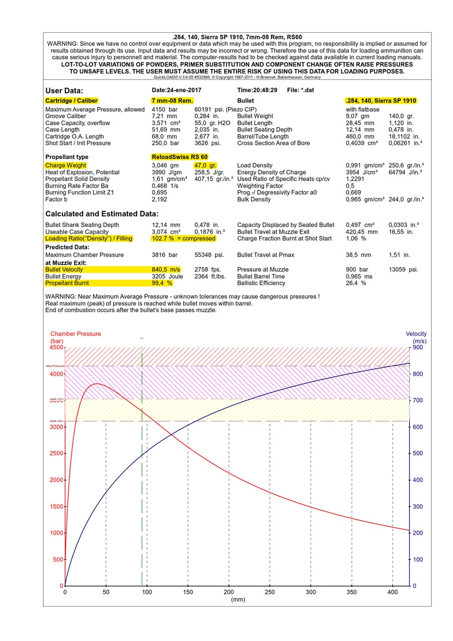 IMPORTANTE: Esta carga sólo debe realizarse en rifles modernos, que admitan presiones de la variante SKAN del 6.5x55