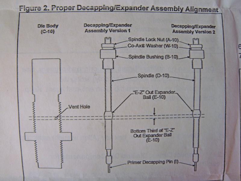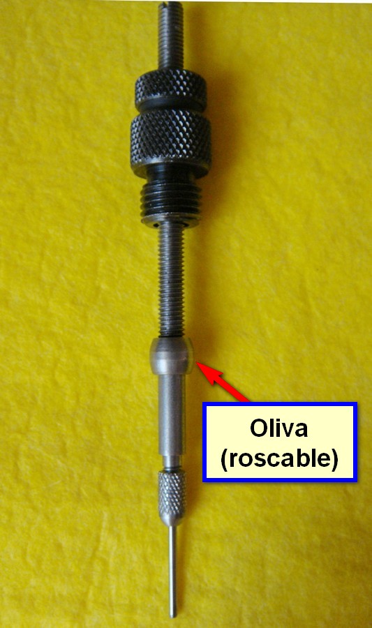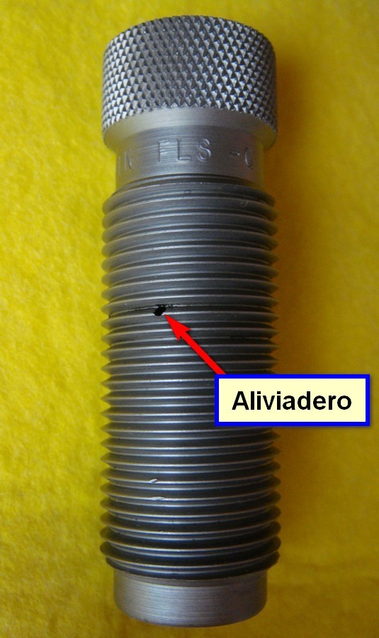 Adjunto las fotos de los dos componentes del DIE, y también un extracto del manual en donde se establece como ha de alienarse la oliva con el aliviadero (el pequeño orificio en el cuerpo principal del DIE).