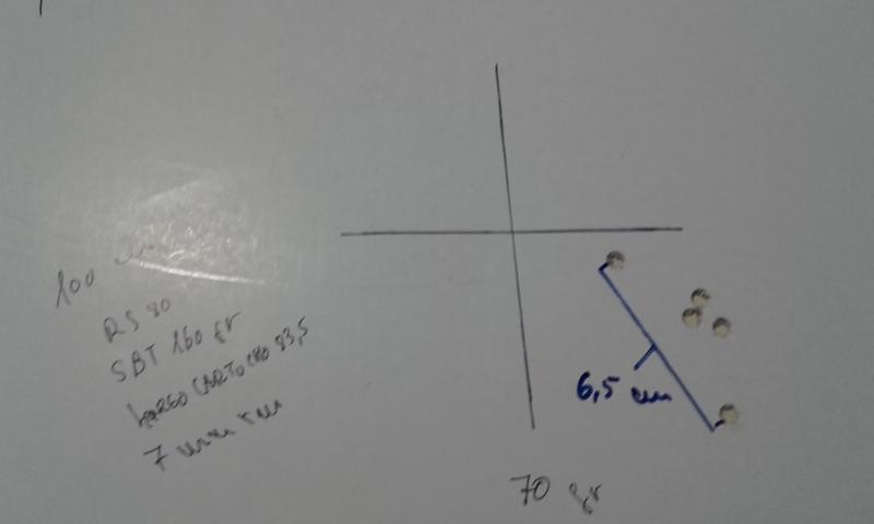 El 300 WM con punta sierra hpbt de 180 gr y 71,4 gr de RS 70 (crimpado suave) me dieron una media de 872 m/s y una agrupación por debajo de los 4 cm a 100 m.Con un LTC de 84,8 mm .Pistones winchester magnum y vainas RWS .También utilice vainas plateadas de winchester y no note ninguna diferencia.El cañón del rifle 61 cm.