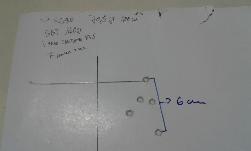 Hola de nuevo.Siguiendo con las pruebas he llegado a la conclusión de que para mi rifle 7 mm rm 69,6 gr de RS80 para la punta sierra spbt de 160 gr con un crimpado muy suave(factory crimp) es con la que más agrupación estoy teniendo con una velocidad media de 800 m/s .(un poco baja para esta punta creo) .El largo del cañón es de 61 cm que en otro post he puesto mal.Vainas RWS y LTC de 82,3