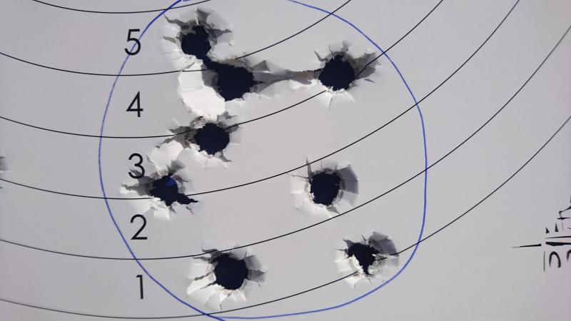 Se obtiene una agrupación aceptable de 8 impactos pero baja. Apuntando al pié de negro.