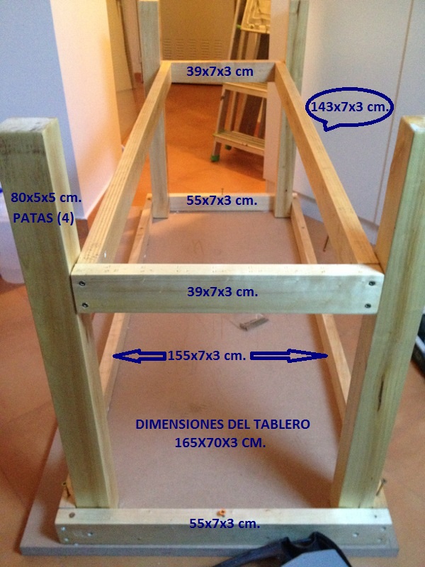 Por otra parte, yo creo que 3 cm de grosor en el tablero de la mesa, es lo suficiente para darle robustez y estabilidad.