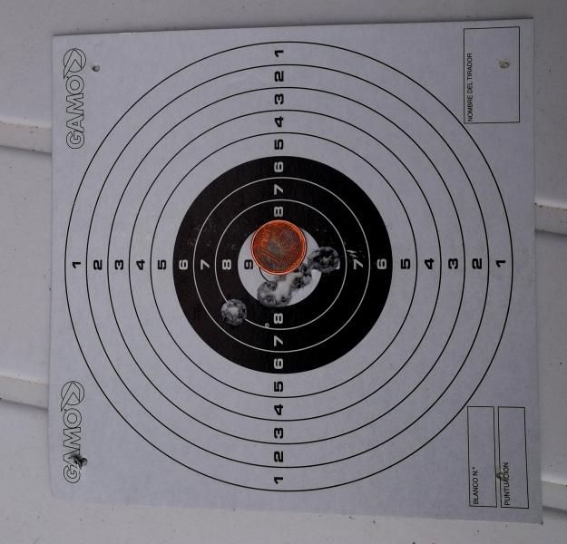 La distancia de disparo 100 metros, la diana de las de tiro con pistola de aire. A ver si me deja pasar la foto. Trataremos de mejorar.